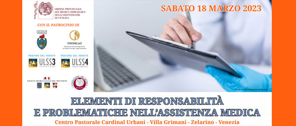 Tutti questi temi, ma anche la qualità dei periti che devono partecipare ai collegi legali nel giudizio dei loro colleghi, i problemi del carico dei codici bianchi in Pronto Soccorso, la dotazione organica e le misure messe in campo dalla Regione Veneto per fronteggiare le carenze di medici dipendenti e il fenomeno delle Cooperative nel supporto libero professionale al sistema sanitario pubblico, l’appropriatezza delle scelte diagnostiche e terapeutiche, saranno approfonditi nel convegno Elementi di responsabilità e problematiche nell'assistenza medica in programma sabato 18 marzo 2023 al centro Cardinal Urbani di Zelarino, organizzato dall'OMCeO veneziano, sotto la guida del presidente Giovanni Leoni.
