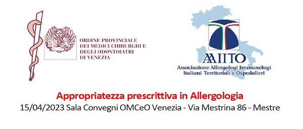 L'appropriatezza in Allergologia è il tema del convegno, accreditato ECM, organizzato per il 15 aprile 2023 nella sala convegni Caterina Boscolo dell'OMCeO Venezia (via Mestrina 86), in collaborazione con la Sezione Triveneto di AAIITO, l'Associazione Allergologi ed Immunologi Italiani Territoriali ed Ospedalieri, nella sede e dedicato a medici e odontoiatri per fornire loro i mezzi per riconoscere, valutare ed indirizzare correttamente i pazienti (appropriatezza prescrittiva) nell’ambito di: