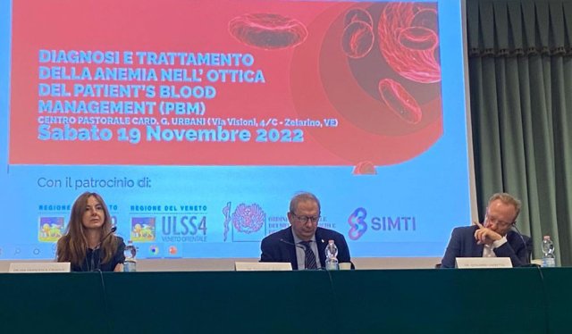 Sabato 19 novembre 2022, al Centro Pastorale Cardinal Urbani di Zelarino, il convegno scientifico intitolato Diagnosi e trattamento dell'anemia nell’ottica del patient’s blood management, organizzato da dottor Gianluca Gessoni, direttore del Dipartimento Interaziendale di Medicina Trasfusionale, con il patrocinio di: OMCeO Venezia, Azienda Ulss 3 Serenissima, Azienda Ulss 4 Veneto Orientale e SIMTI.