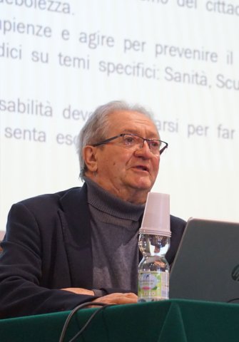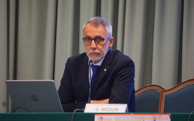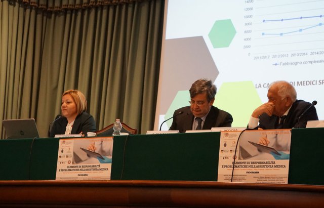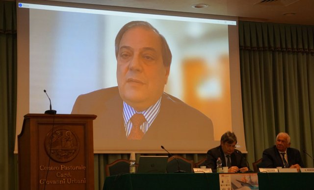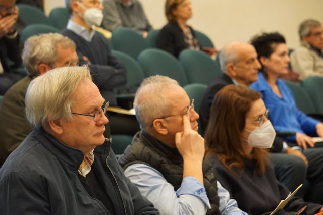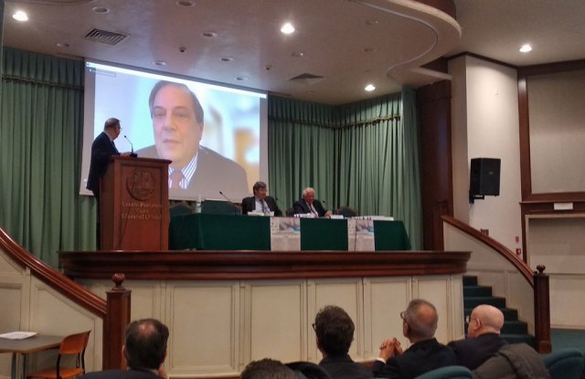Sul maxischermo Filippo Anelli, seduti da sinistra Silvano Zancaner ed Enrico Pedoja