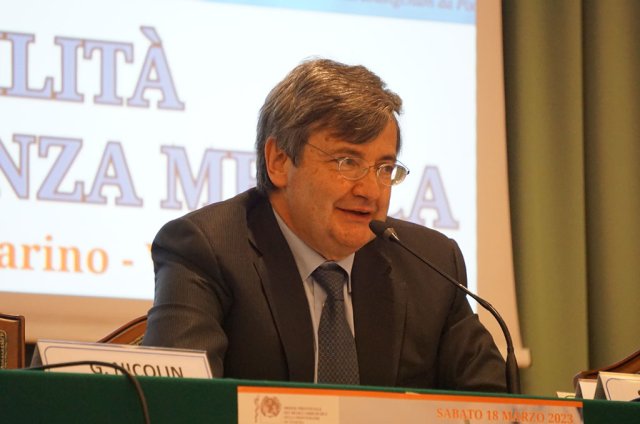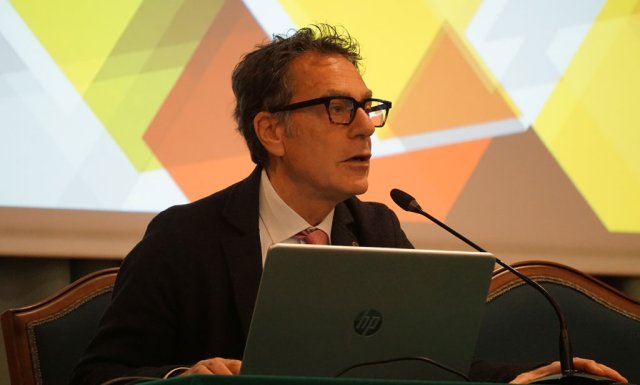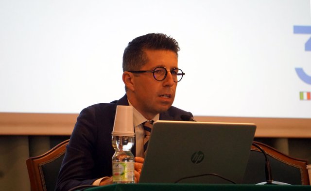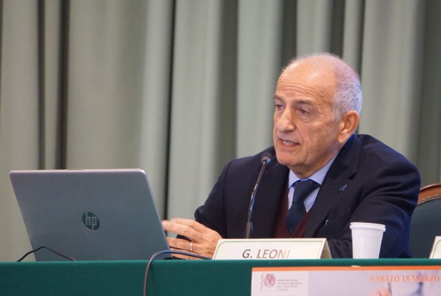 Sul palco Giovanni Leoni, sul maxischermo Filippo Anelli