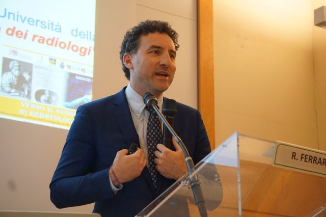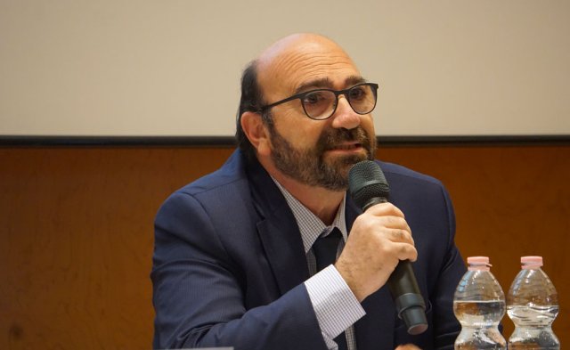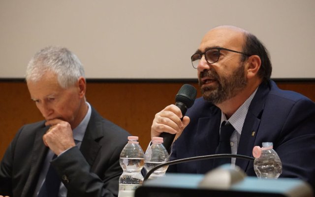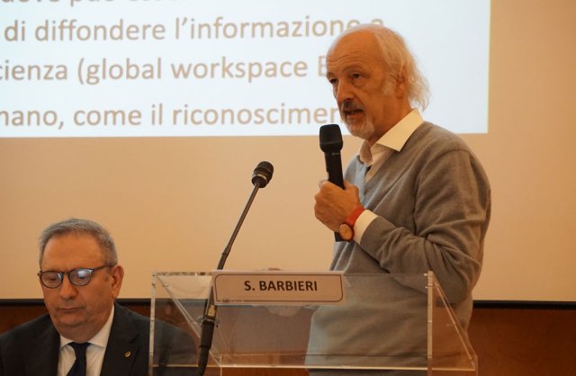 Seduto Giovanni Leoni, sul podio Sergio Barbieri