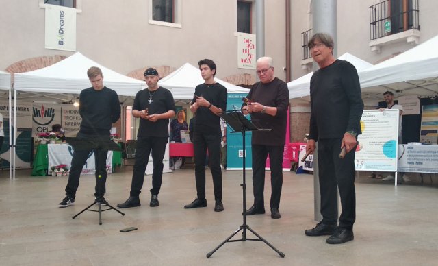 Da sinistra Gabriele Gasparini, i Cafè Sconcerto - Salvatore Esposito e Monica Zuccon - e Nicoletta Codato