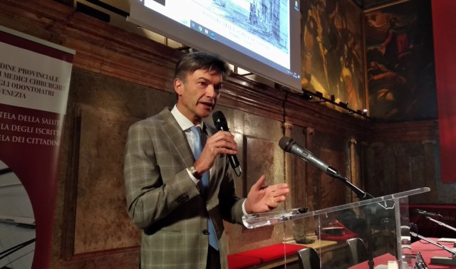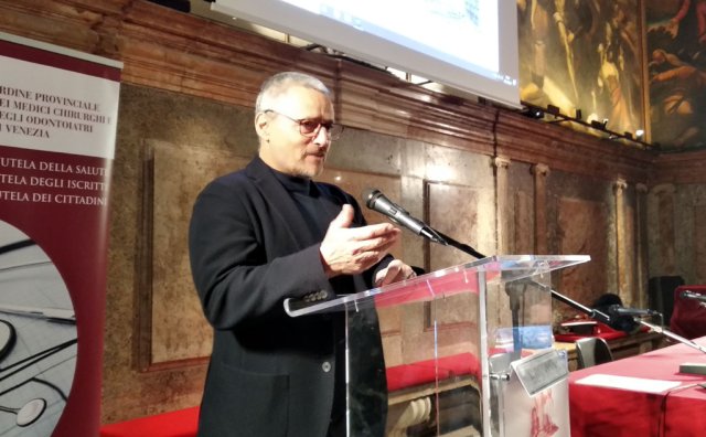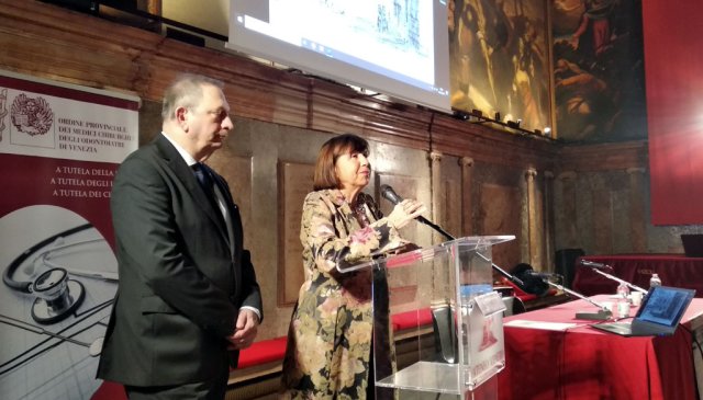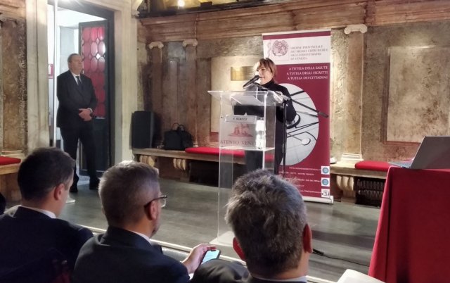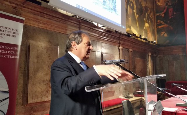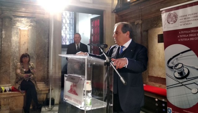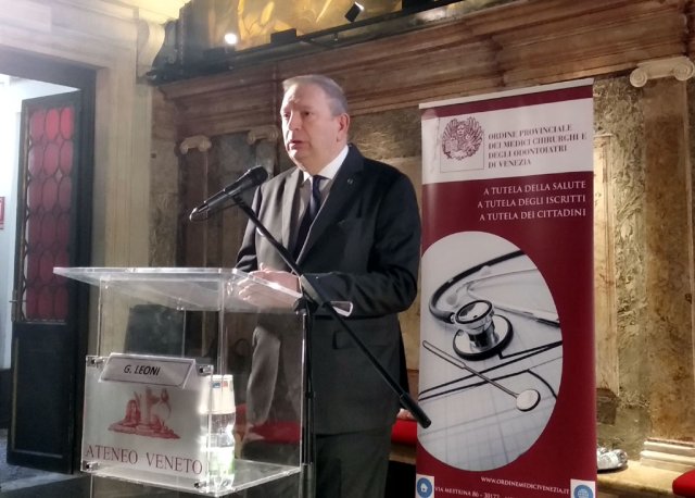 Sul podio Filippo Anelli, sullo sfondo Antonella Magaraggia e Giovanni Leoni