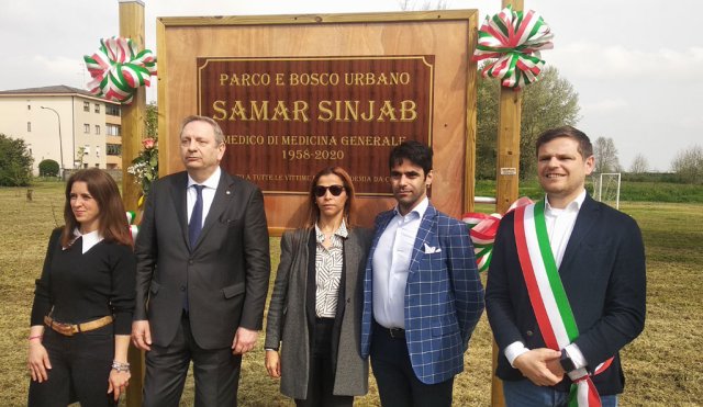 Da sinistra Giovanni Leoni, Rafi e Dania El Mazloum, Luca Barbacane e Maurizio Scassola