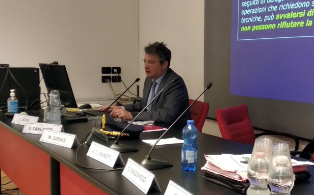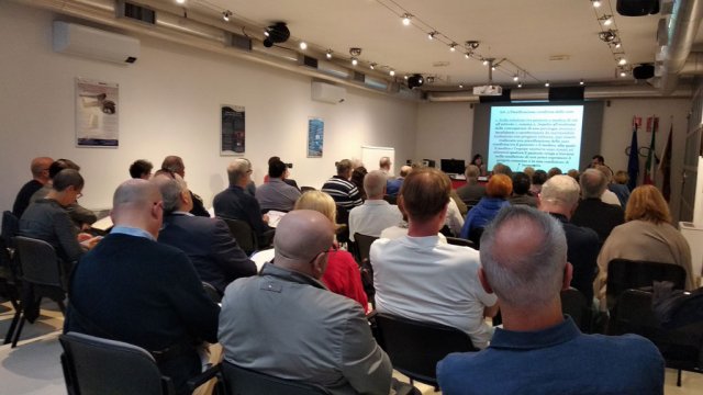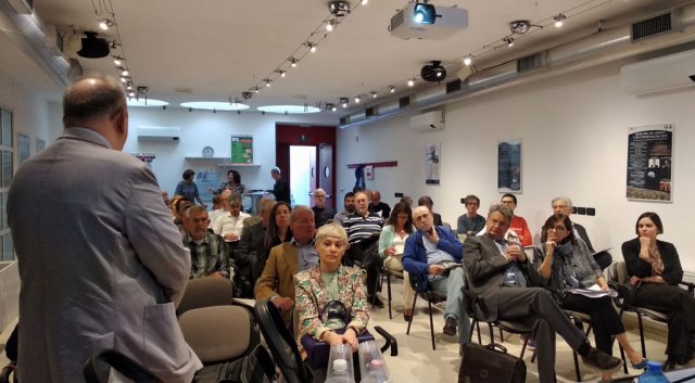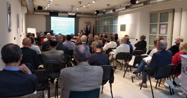 In primo piano Giovanni Leoni, sullo sfondo da sinistra Manlio Cardile e Cristina Mazzarolo