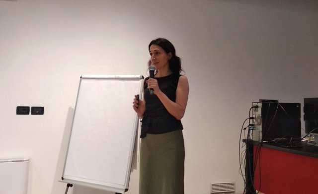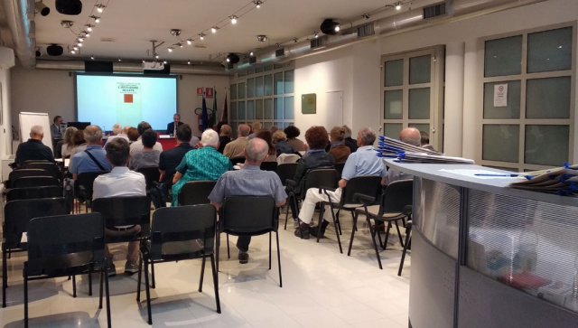 In piedi Maria Bianco, al tavolo Giovanni Leoni