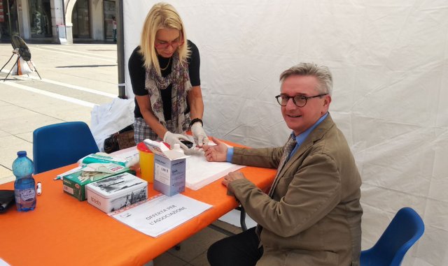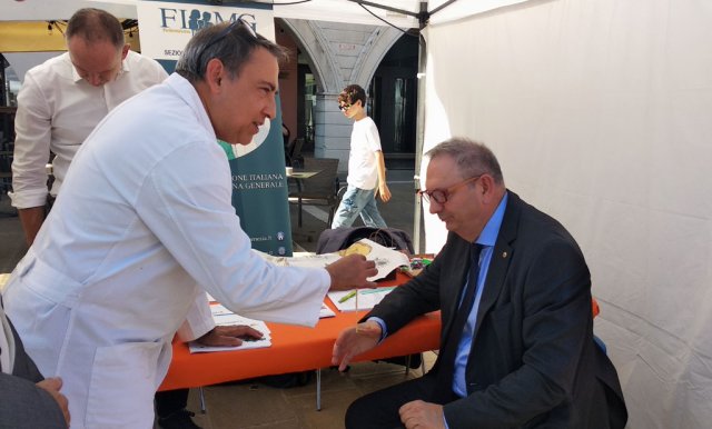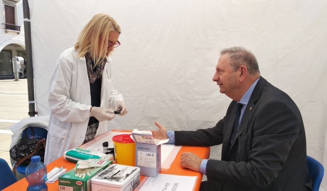 Simone Venturini in visita agli stand in Piazza Ferretto