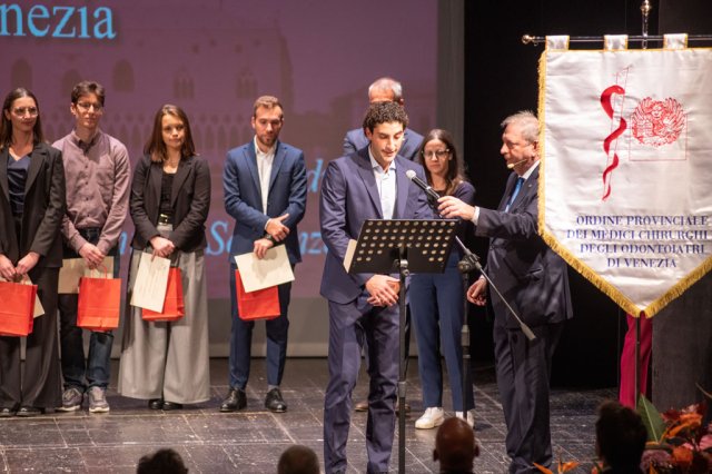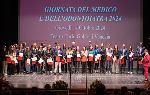 Giovanni Fabris legge il Giuramento di Ippocrate a nome dei colleghi neoiscritti all'Ordine