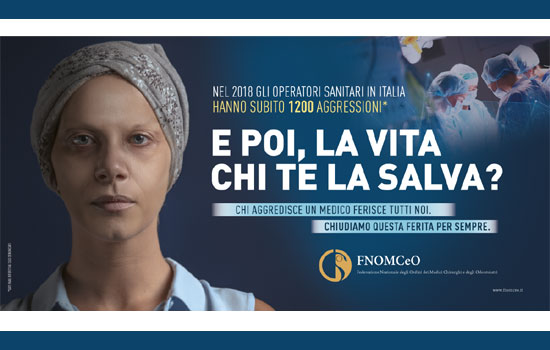 Nella foto uno dei manifesti della campagna di sensibilizzazione contro la violenza nel mondo sanitario promossa dalla FNOMCeO nel 2020