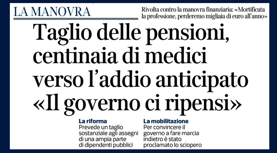 Il taglio delle pensioni per i medici a partire dal 2024, contenuto nella manovra di bilancio, rischia di provocare prepensionamenti di massa nella categoria. Centinaia di camici bianchi stanno pensando di lasciare in anticipo il lavoro. «Io stesso, che potevo andare in pensione l'anno prossimo ma avevo chiesto di restare in servizio fino ai 70 anni, sto facendo i miei calcoli» spiega amareggiato per il trattamento riservato alla categoria, in una lunga intervista a Stefano Bensa pubblicata ieri, domenica 5 novembre 2023, sul Corriere del Veneto, il presidente dell'OMCeO veneziano Giovanni Leoni nelle sue vesti di vice nazionale e presidente di CIMO Veneto. «Disorienta - aggiunge - vedere cambiare in corsa le regole del gioco».