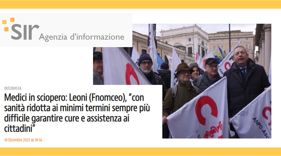 Si può leggere l'intervista integrale anche a questo link diretto: https://www.agensir.it/quotidiano/2023/12/18/medici-in-sciopero-leoni-fnomceo-con-sanita-ridotta-ai-minimi-termini-sempre-piu-difficile-garantire-cure-e-assistenza-ai-cittadini/